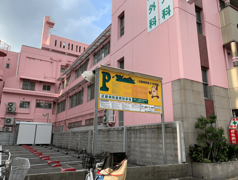 近隣に駐車場が多数ございますので看板に”近藤病院提携駐車場”と